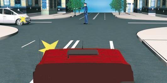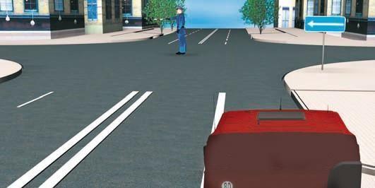 Данный сигнал регулировщика разрешает движение обоим автомобилям. Вам следует начать движение, выехать на перекресток, а при завершении разворота уступить дорогу легковому автомобилю. Правильный ответ – 2.