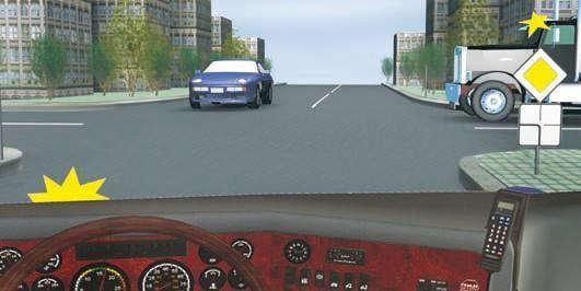 2. Уступите дорогу только грузовому автомобилю с включенным проблесковым маячком.