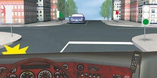 2. Остановиться перед стоп-линией и после проезда легкового автомобиля повернуть налево.