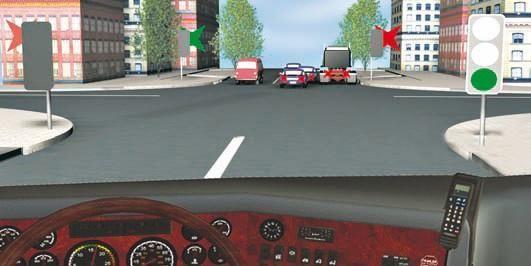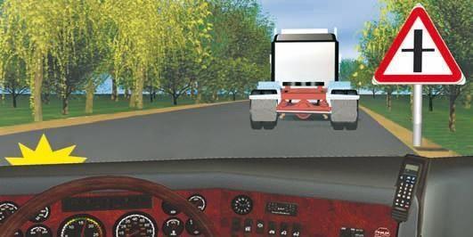 Вы намерены продолжить движение в прямом направлении. Следует ли уступить дорогу грузовому автомобилю?