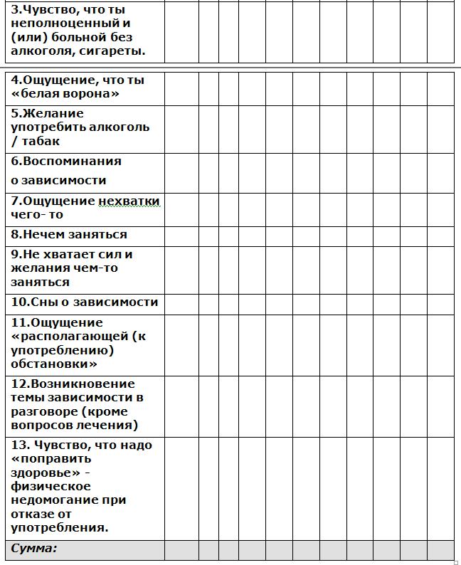 При ухудшении показателей (рост суммы баллов) как для шкалы «общее состояние», так и для шкалы «психическая зависимость», отвечаете на следующие вопросы: