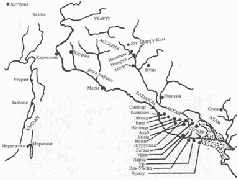 В шумерском Списке Царей город Мари упоминается как десятая столица политико-религиозного образования на территории Месопотамии, известного под названием Шумер и Аккад (см. карту, рис. 60). Царские архивы, состоявшие из глиняных табличек с клинописью, сообщали, что Мари был основан в четвертом тысячелетии до нашей эры как место переправы через Евфрат и центр кораблестроения, а в третьем тысячелетии до нашей эры превратился в крупный центр международной торговли. Далее в записях следует пробел длительностью около ста лет, а затем город упоминается как десятая и последняя столица Шумера и Аккада — примерно с 1900 года до нашей эры до 1761 года до нашей эры, когда он был завоеван и разрушен вавилонским царем Хаммурапи. Звезда его закатилась — руины были занесены песком, а память о нем стерлась.